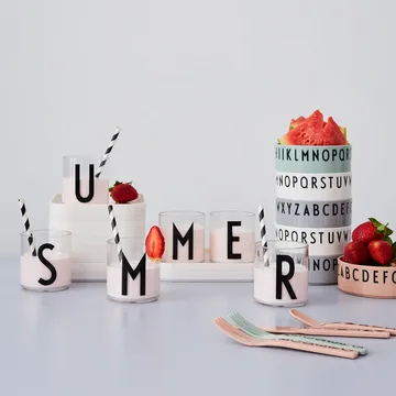 Design Letters lasten ruokailuvälineet melamiini from Design Letters on viehättävä aterinsetti Arne Jacobsen Kids Vintage -mallistosta, suunnitellut Tobias Jacobsen. Leikkisä typografia kannustaa aakkosleikkiin pöydässä ja tekee ruokailusta sekä hauskempaa että turvallisempaa lapsille. Aterimet ovat kestäviä, helposti otettavissa käteen ja helppoja pitää puhtaina, mikä sopii arjen kiireiseen rytmiin. Täydellinen lahja lapselle, joka alkaa syödä itse, tai kaunis yksityiskohta lastenhuoneeseen, joka yhdistää toiminnallisuuden ja iloisen muotoilun
