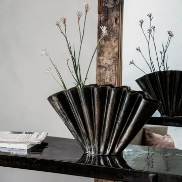 Flood maljakko House Doctorilta on täydellinen maljakko mihin tahansa kotiin tyylistä riippumatta. Maljakko on valmistettu raudasta, mikä antaa teollisen ja hieman rouhean ilmeen. Maljakon molemmin puolin olevat taitokset tekevät siitä elävän, ja taitokset auttavat lisäksi pitämään kukat koossa