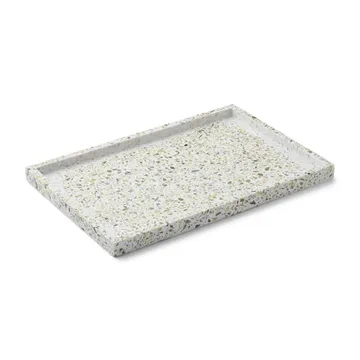 Humdakin Terrazzo -tarjotin 30x20 cm dari tanskalaiselta merkiltä Humdakin on kaunis yksityiskohta sekä keittiöön että kylpyhuoneeseen, mutta se voi toimia myös koristeellisena tarjoilualustana ruokapöydällä. Se on pelkistetty, klassinen ja antaa huoneelle ylellisen tunnelman. Terrazzo on taidekivi, joka valmistetaan murskatusta marmorista tai muista kivilajeista. Yhdistä tarjotin mielellään muihin Humdakin Terrazzo-sarjan osiin yhtenäisen ilmeen luomiseksi