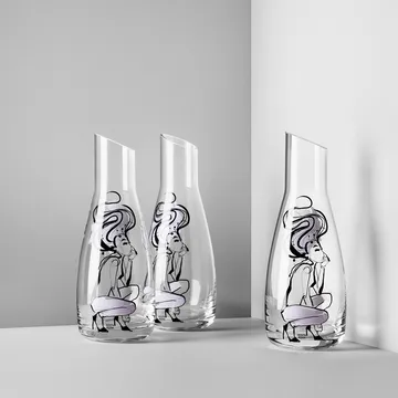Tarjoile tyylillä! Jopa tavallinen vesijohtovesi tuntuu ylellisemmältä, kun tarjoilet sen karahvista All about you Kosta Boda. All about you -sarja on Sara Woodrow'n suunnittelema, ja hän on ammentanut inspiraation kuvioon omasta persoonallisuudestaan sekä siitä, miltä hänestä tuntuu, kun hänen miehensä on matkoilla. Kun rakastamasi henkilö on maapallon toisella puolella, tuntuu kuin hajoaisi, mutta kun taas näkee, mikään tunne maailmassa ei ole parempi. Sara Woodrow on saanut inspiraatiota myös muotimaailmasta, mikä näkyy koristelussa.