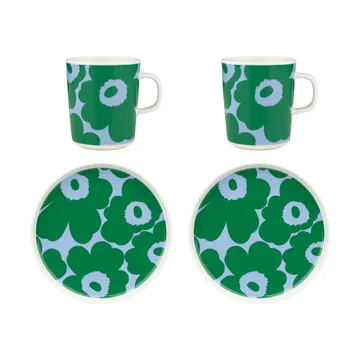 Unikko aamiaissetti, Valkoinen-vihreä-vaaleansininen, 4 osaa Marimekko